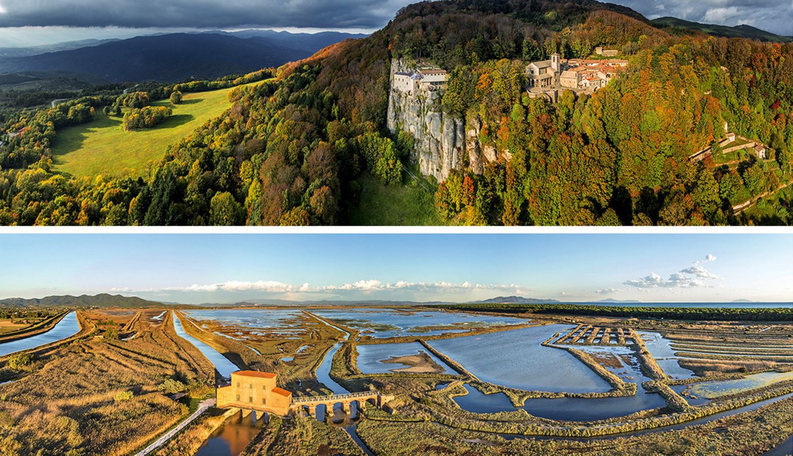 The massive red-brick building standing astride one of the outflow channels of the marshes of Castiglione della Pescaia was built by the engineer Leonardo Ximenes in 1765 as part of extensive reclamation work in Maremma. The building housed winches and water gates that could be operated to separate the freshwater of the swamp from the salt water of the sea, preventing the formation of the “miasma”, which, according to the scientific theories of the day, was the main cause of malaria. The marsh is a rare ecosystem, home to a wealth of birdlife and 15 different species of orchid.