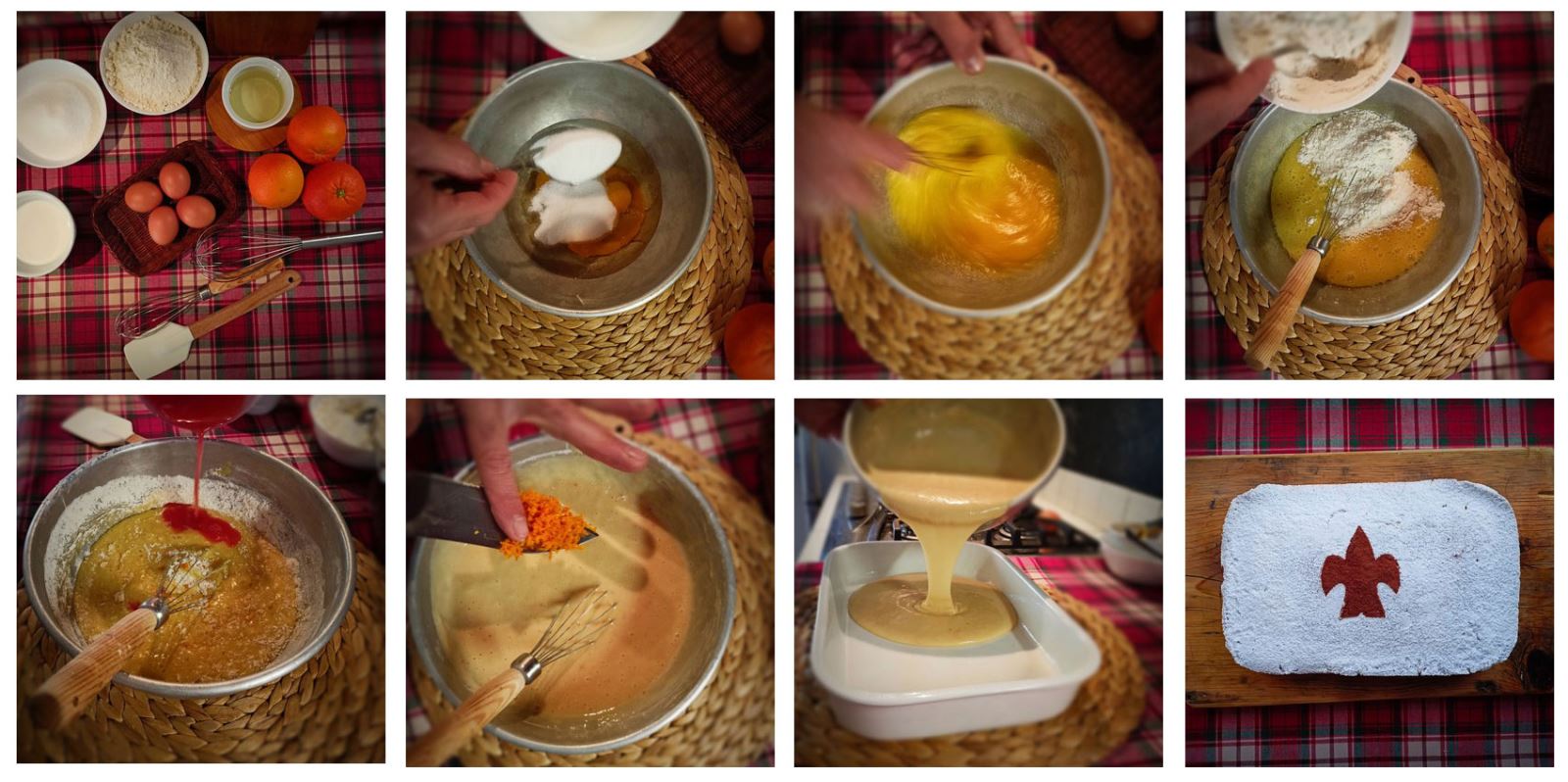 This special orange cake is traditionally prepared in Florence during carnival, specifically on Shrove Tuesday. The characteristic feature of Schiacciata alla Fiorentina is its rectangular shape, which is covered with icing sugar and decorated with a cocoa powder fleur-de-lis design. The fleur-de-lis is featured on the coat of arms of Florence and known as Il Giglio Fiorentino in Italian.