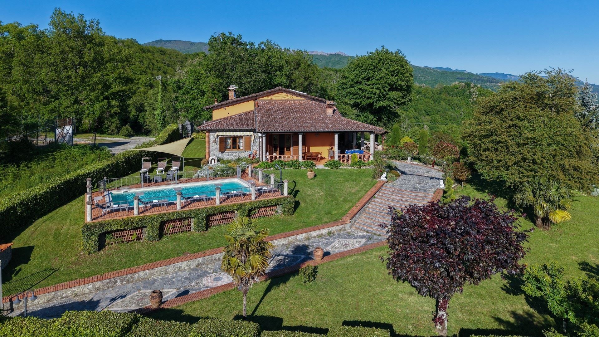 Set on a hilltop in the Garfagnana, one of Tuscany’s most unspoiled regions, Colle Santa Cristina boasts generous gardens and truly spectacular views. The area is rich in charm, with nearby mountain villages to explore and outdoor activities such as hiking and canoeing on the Serchio River. Some of Tuscany’s most famous sights, including the iconic Ponte della Maddalena (also known as the Devil’s Bridge), as well as the historic towns of Lucca and Pisa, are also within easy reach.