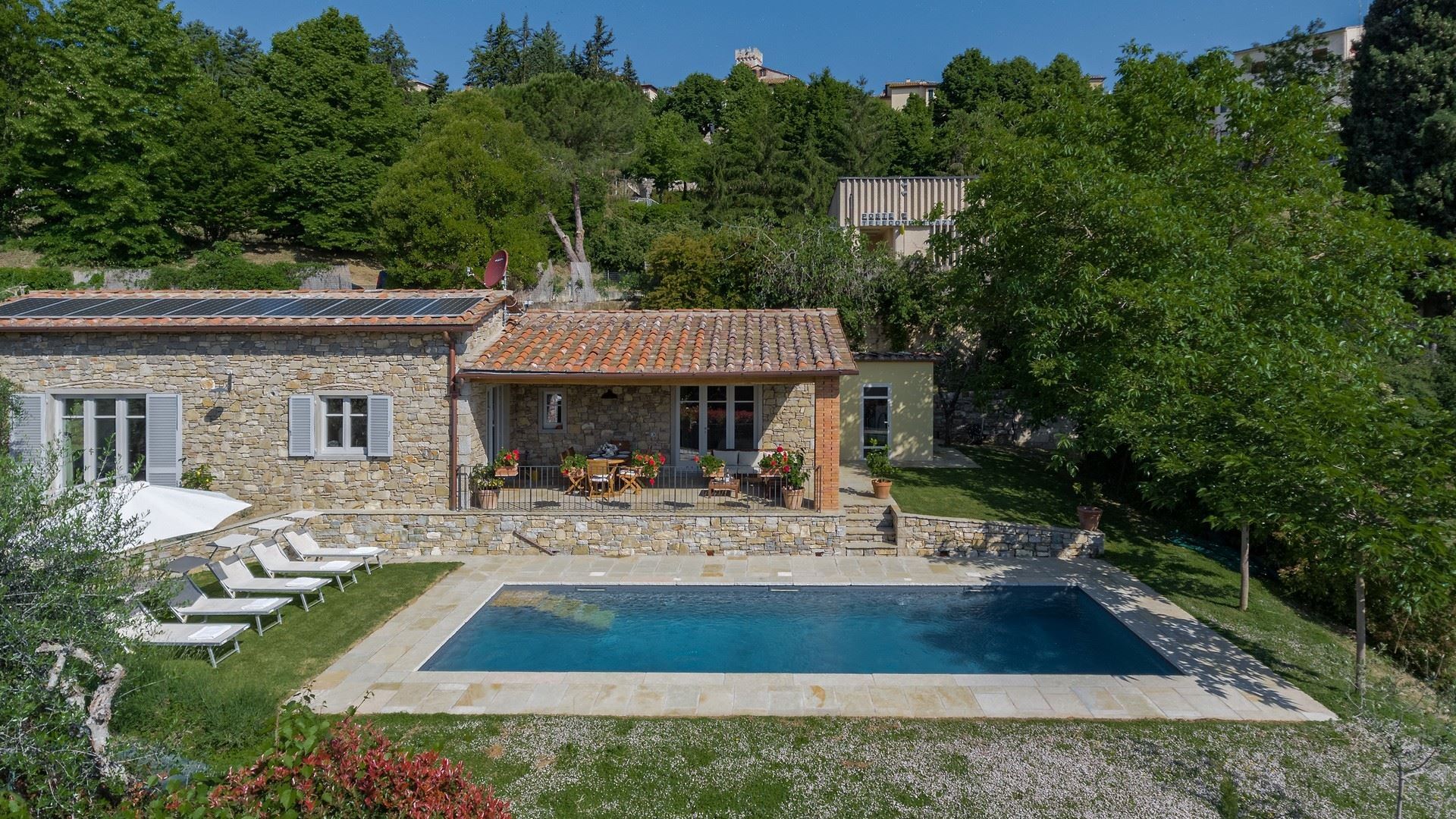 Poggio Lungo is the ideal villa for a holiday with extended family or friends - including the four-legged kind. It features a beautifully maintained interior and large, fully fenced gardens with plenty of cosy seating areas and a spacious pool. With room to relax, play, and explore, the villa offers something for all ages. The historic city of Arezzo is just a 30-minute drive away, and both Siena and the rolling hills of the Chianti region are also within easy reach.