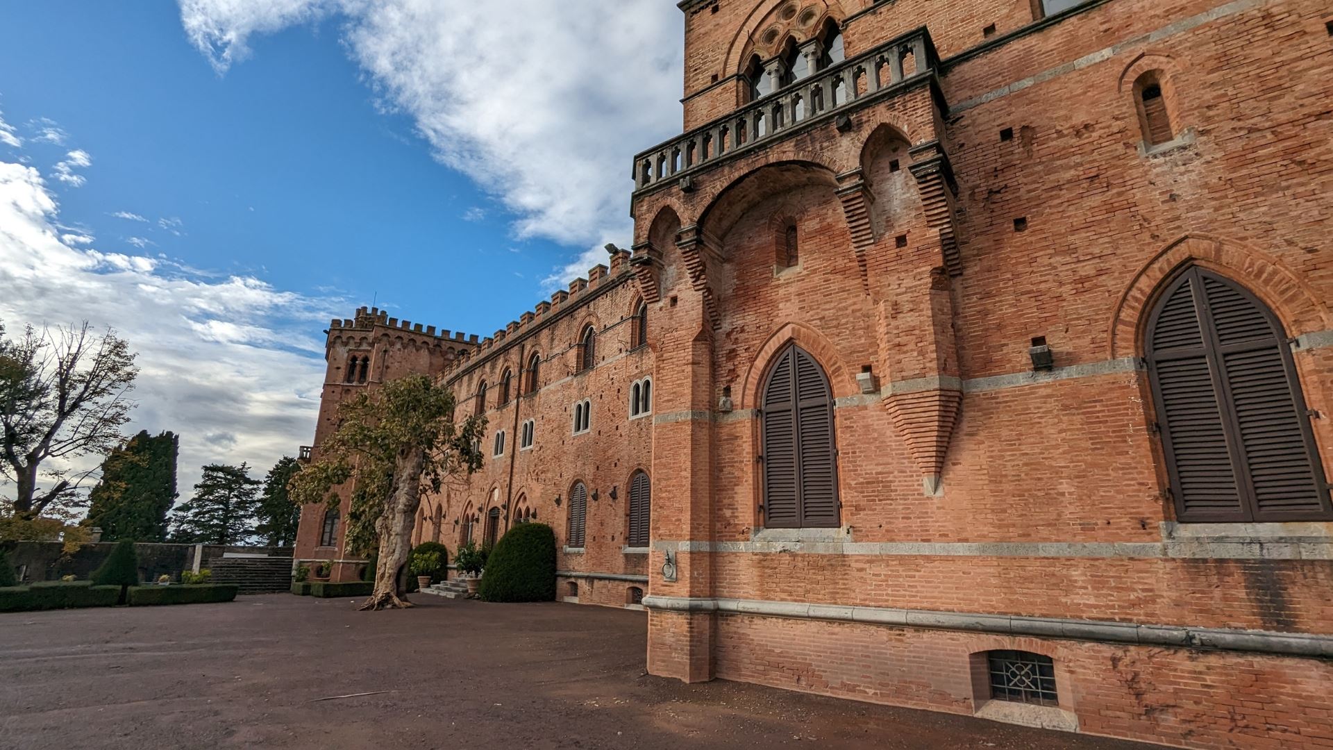 Located in Gaiole in Chianti, Castello di Brolio, owned by the Ricasoli family, is the most representative wine producer in the Chianti Classico wine area. The property covers 1,200 hectares, including almost 240 hectares of vineyards and 26 hectares of olive groves. Over the centuries, the castle has suffered attacks and deconstruction, leading to reconstruction and modification, witnessed in the different colours and marks of the castle's structure.