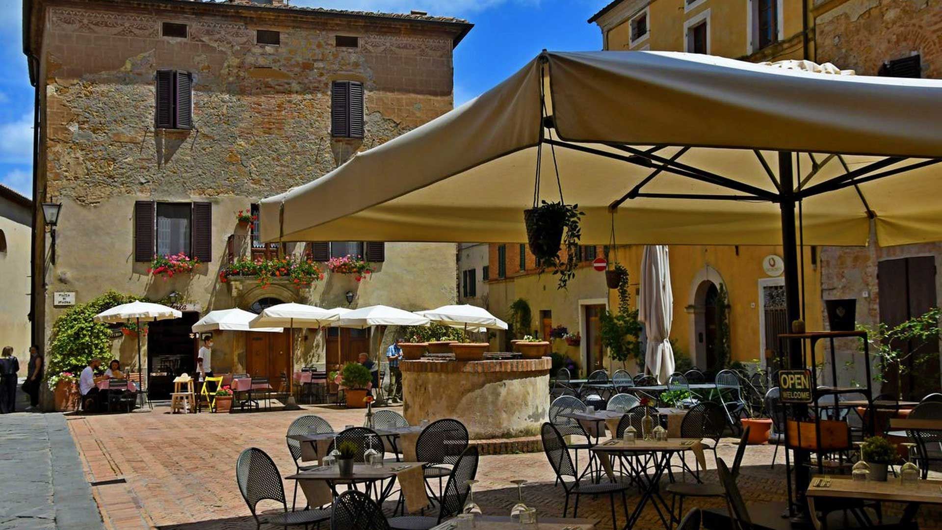 If you succumb to the magic of Banfi (see Things to Do), consider dining under a vaulted ceiling in the elegant-rustic La Taverna or in the formal Sala dei Grappoli. Both restaurants are above average prices because you’re paying for sophisticated ambience, matched by an equally smooth sommelier. La Taverna feels far more Tuscan in menu and mood while Sala dei Grappoli is made for splashing out on creative cuisine and vintages such as Poggio alle Mura Riserva Brunello 2011.