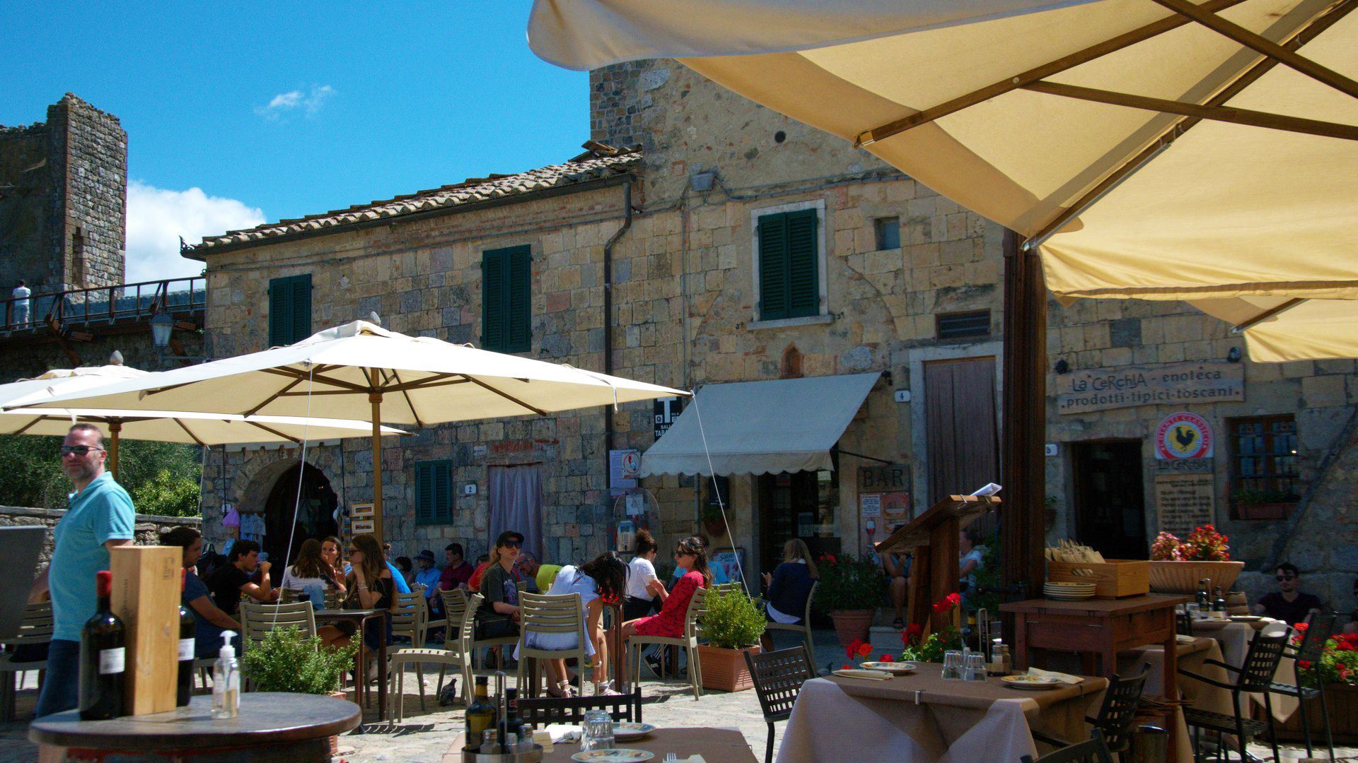 Consider your first wine-tasting at an enoteca as Castellina is awash with Chianti Classico. The trademark on bottles of Chianti Classico is the Black Rooster (or Black Cockerel), the historic symbol of the Chianti Military League. In the late 13th century, Castellina was the first site of the Chianti League, a group of three Florentine feudal castles. Call into L’Antica Trattoria alla Torre for lunch. Set on the main square, this old-fashioned inn serves Tuscan treats on a summery terrace. Tuck into the Florentine T-bone steak, grilled meats and Pecorino cheeses, all washed down with Chianti Classico wines, of course.