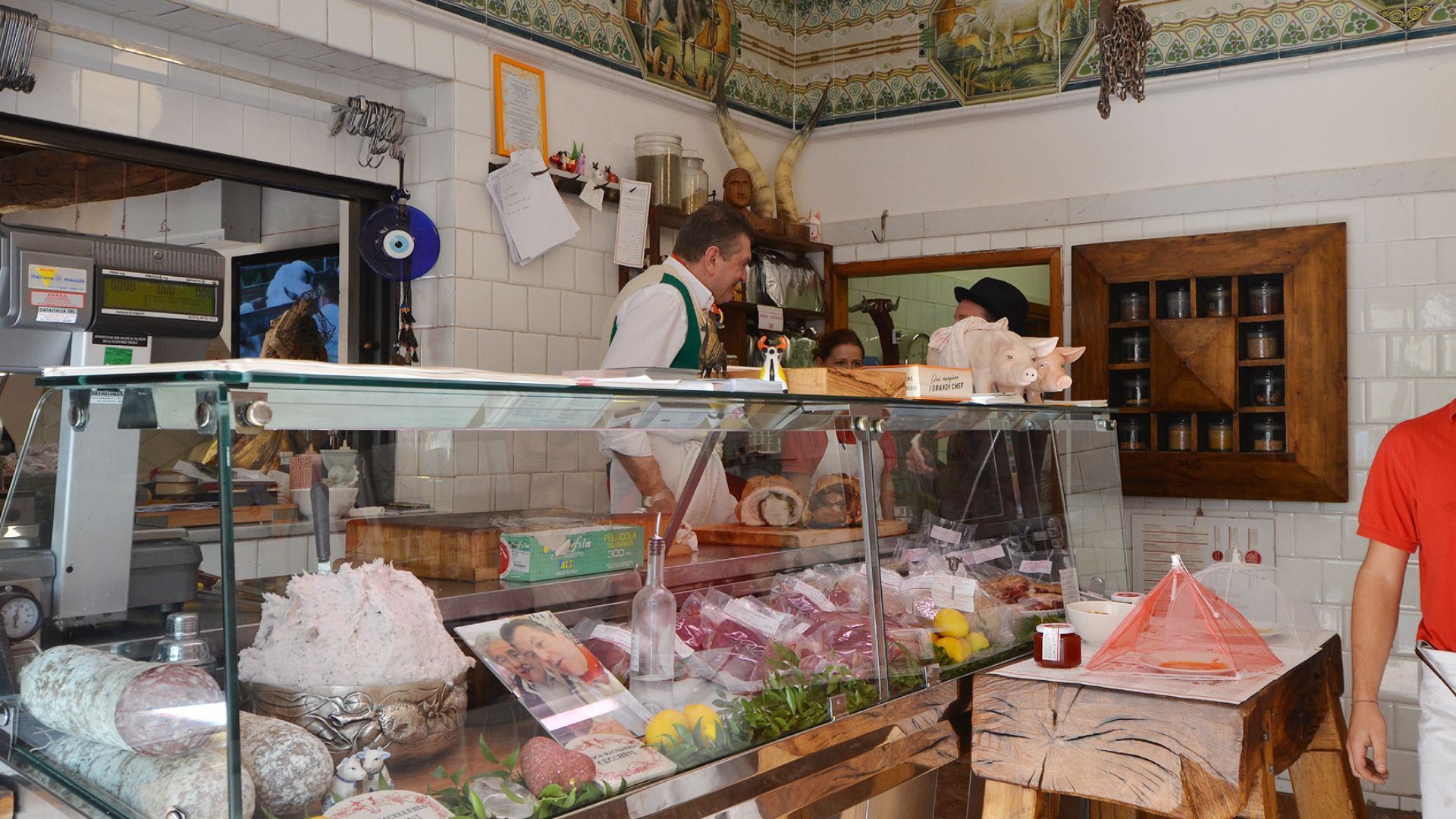 Panzano, just east of San Donato, is the place to indulge in a passion for Tuscan meat, including Florentine T-bone steak. This Tuscan bastion is the meaty preserve of Dario Cecchini, a cleverly eccentric celebrity butcher with a mini empire in these parts. No one can wield a bloody meat cleaver better, still less while reciting Dante. Part butcher, part showman, Dario keeps his audience entertained as well as over-fed.
