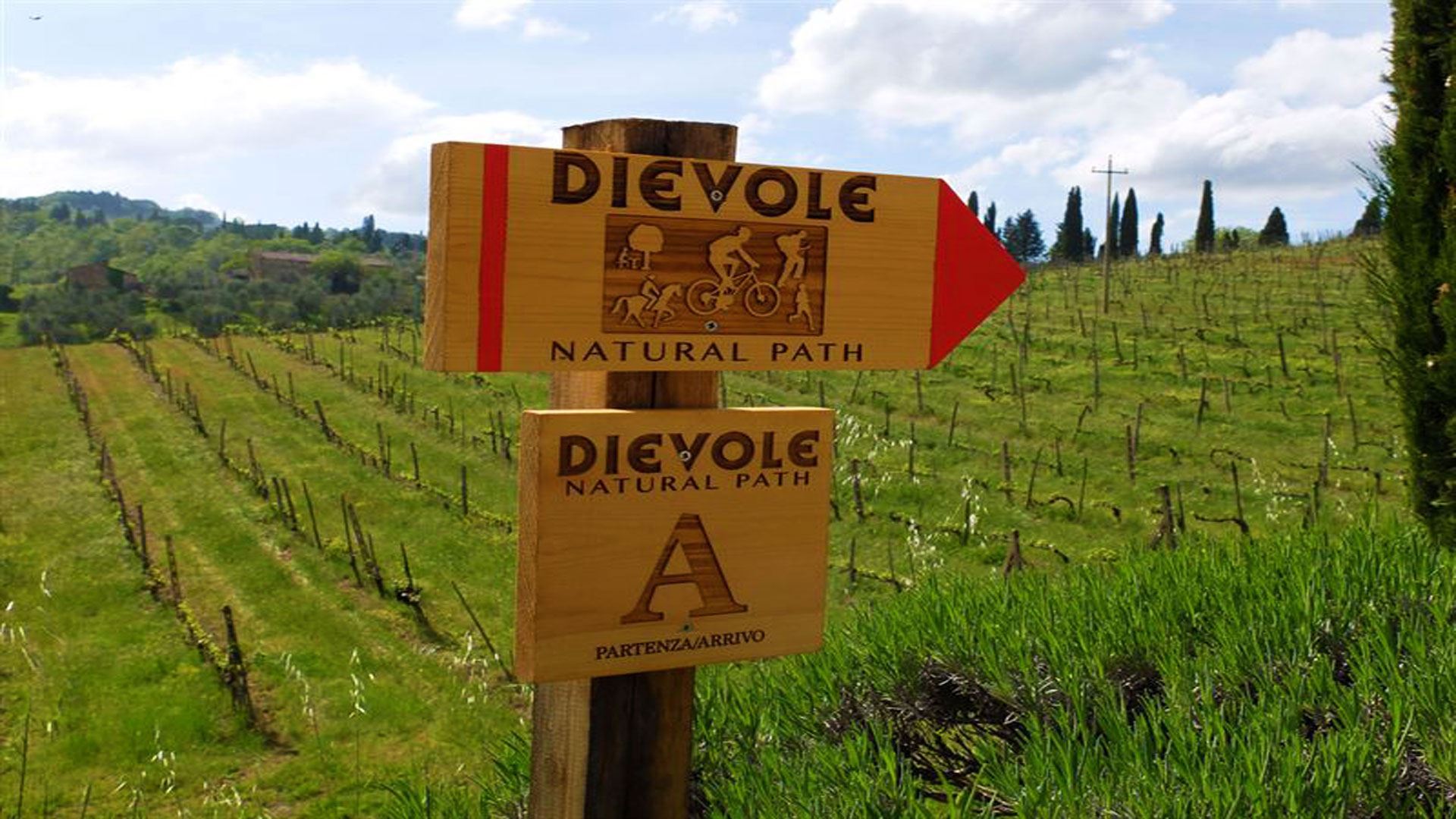 The route begins in the hamlet itself, with an intriguing 26 km trail around vine-clad slopes. At its heart is the Dievole wine estate, a 400-hectare property 12 km north of Siena. Although it’s a private estate, anyone is welcome to ride the trail, which has recently been revamped and signposted. The `new’ trail was devised by an estate-worker, who knows the land like the back of his sun-leathered hand. In one sense, the trail is as ancient as the hills and was used by Tuscan sharecroppers for almost a thousand years. Ideally consult the Dievole estate before setting off on the trail and consider booking the gourmet picnic option.
