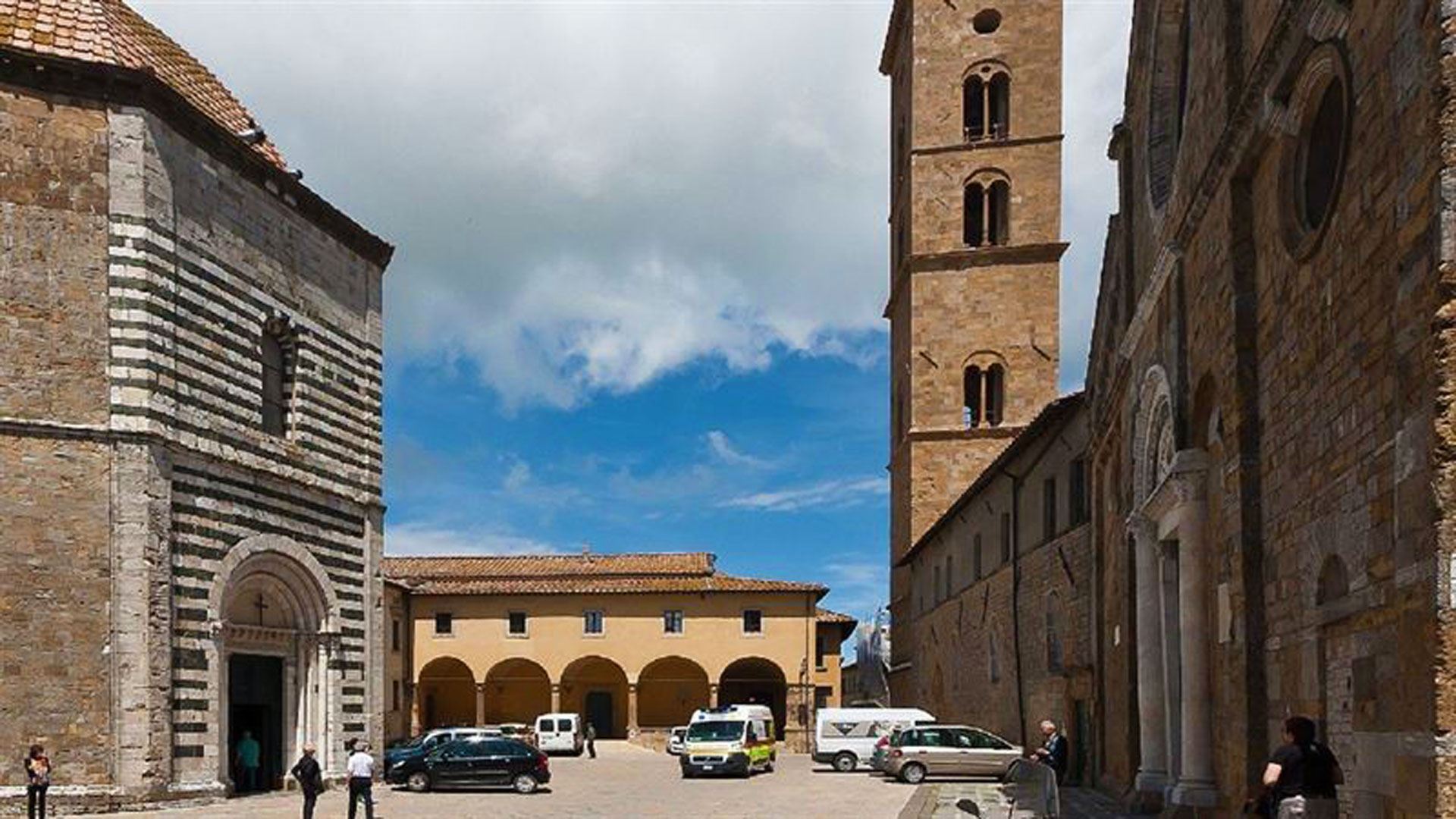 To the south of Piazza dei Priori is Piazza San Giovanni, the religious centre of Volterra. Crowning the square is the 12th-century Duomo, with its Pisan Romanesque façade. Officially known as the Cattedrale di Santa Maria Assunta, the cathedral is currently closed for restoration, probably until September 2019. Inside, the highlight is the impressive coffered ceiling and a collection of works of art dating from the Middle Ages to the Renaissance. The sculpture of the Deposition is an extremely rare Romanesque woodcarving, simple in execution but full of pathos and drama. The Duomo, remodelled in the 16th century, should be returning to its former glory fairly soon.