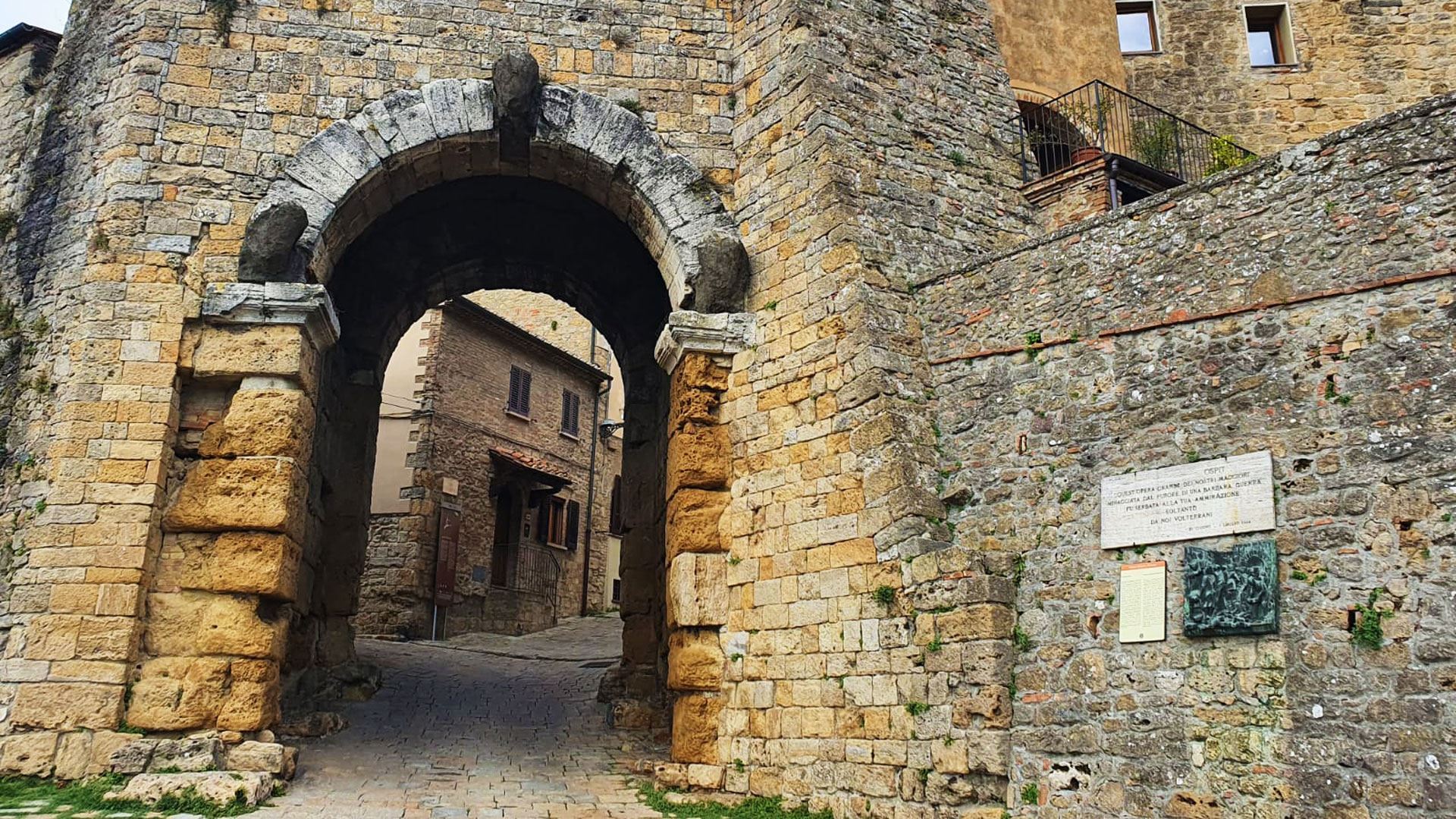 The Porta all’Arco, the Arched Gate, is the best-preserved Etruscan gateway in Italy, dating from the 4th century BC. Although probably inspired by Mesopotamian architecture, the gateway was partially remodelled by the Romans in the 1st century BC. The Roman vaulting rests on massive Etruscan bases and is the only surviving part of the Etruscan walls. The vaulted gateway is carved out of huge rectangular stone blocks and surmounted by three mysterious carved basalt heads. These weathered heads probably represent Etruscan or Roman gods. One popular theory has it that the gods represented the guardians of Volterra, cast in the form of Jupiter, Juno and Minerva. Minerva, the Roman goddess of wisdom, trade and the arts, existed in Etruscan mythology as `Menrva’.