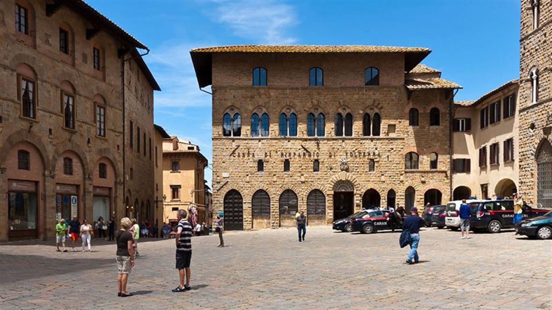 A charming road winds its way uphill from the Etruscan Archway, the Porta all’Arco, to the Piazza dei Priori, the town’s set-piece square. The Piazza dei Priori is proof of Volterra’s rich medieval heritage, with its cluster of noble palaces. The square is dominated by the lofty Palazzo dei Priori (1208), the oldest town hall in Tuscany and supposedly the model for Florence’s Palazzo Vecchio. Even if the clock tower and crenellations were remodelled at a later date, the overall impression is of a typical Tuscan town hall. On a fine day consider climbing to the top of the belltower for urban views. Across the square stands the 13th-century Palazzo Pretorio, with its crenellated Torre del Porcellino (Tower of the Little Pig), named after its decorative relief of a boar.